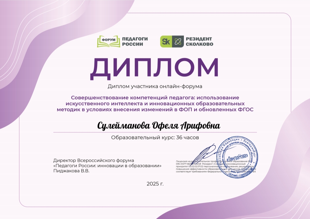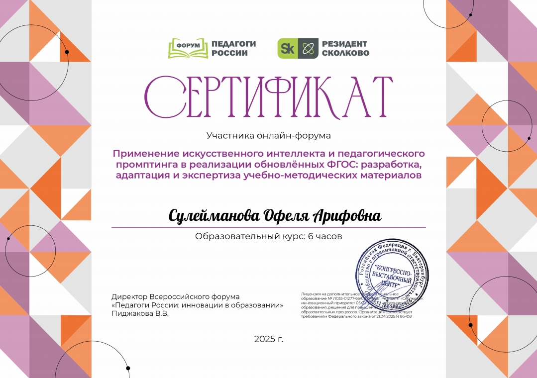 "Совершенствование компетенций педагога:использование искуственного интеллекта и инновационных образовательных методик в условиях внесения изменений в ФОП и обновленных ФГОС"