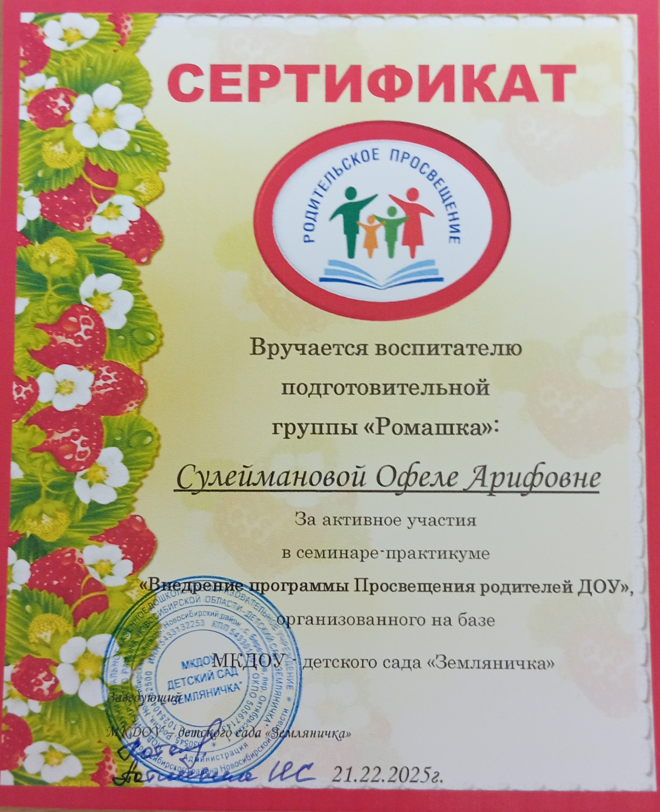 "Программа просвещения родителей в ДОО Новосибирской области."