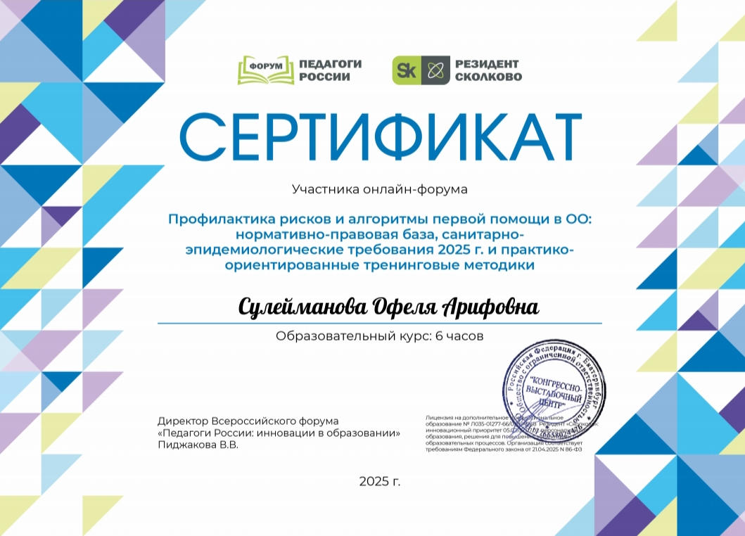"Профилактика рисков и алгоритмы первой помощи в ОО:нормативно-правовая база , санитарно-эпидемиологические требования2025г. и практико-ориентированные тренинговые методики."